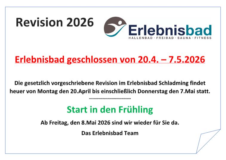 info@erlebnisbad-schladming.at oder Tel.: 03687/23271